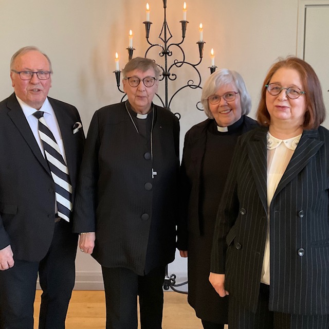 Tulkaa kaikki -toimintaryhmän jäsenet Ilari Rantakari, Arja Majuri, Raija Korhonen ja Tarja Kantola osallistuivat muistotilaisuuteen. Laskimme ruusun ja luovutimme adressin Tulkaa kaikki- liikkeen ja Ekumeenisen Yhteys-liikkeen puolesta.